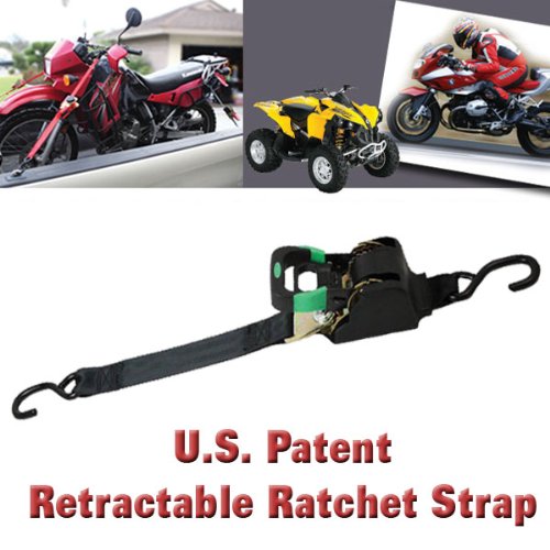 Our new retractable ratchet strap is ideal for MOTORCYCLES, ATVS, and BOAT TRAILERS where the same machine is being hauled around from place to place on a regular basis. Simply hook the ratchet in the desired location using the proper hardware. Easy hook up and release every time. The retractable ratchet is so simple to operate and works great every time.