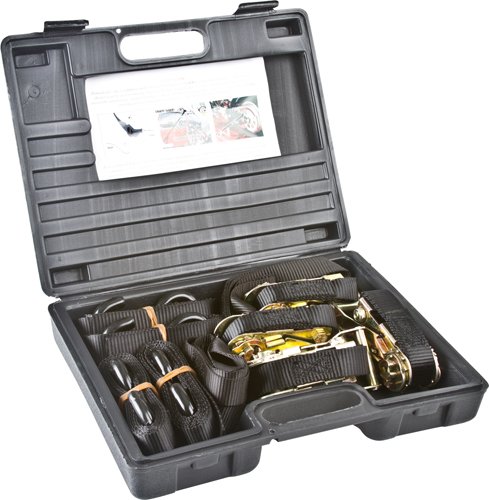 Motorcycle Tie Down Kit includes (4) ratchet S-hook straps and (4) soft loops in a hard plastic carrying case. MK-SK1-RThis website is a participant in the Amazon Services LLC Associates Program, an affiliate advertising program designed to provide a means for sites to earn advertising fees by advertising and linking to amazon.com